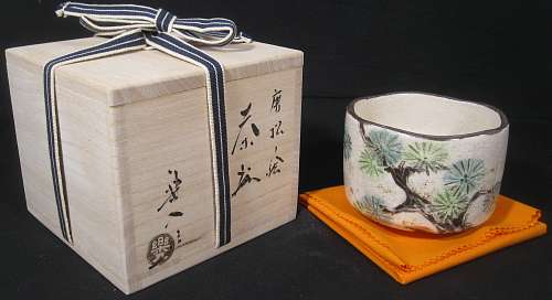 Raku-yaki Tea Bowl With Matsu / Pottery#299031 $78.00