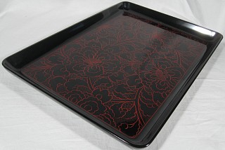 Item description : Wajima-nuri Obon tray with elegant Makie works of Peony