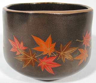 Item description : Tea bowl with attractive Makie works of Momiji (red maple leaves) made of lacquered Zelkova