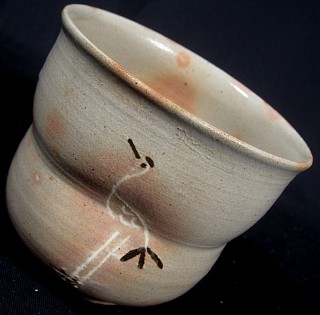 Hagi-yaki Tea Bowl Witt Crane In Tsutsu Style