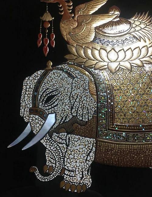 Item description : Fumibako with fabulous Makie works of Haku-zo (an elephant in white) which is elaborately arranged by an artist. The design of this item is based on the Nasser Khalili's collection. Mr Nasser David Khalili is a famous British-Iranian collector of Japanese arts originally made back in Edo - Meiji period (1800's)