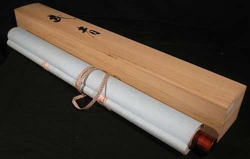 Item description : Kenpon Kakejiku with nice drawing of Samurai riding a horse andMt Fuji background