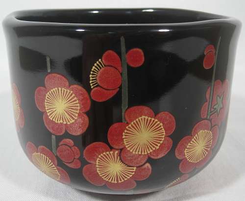 Item description :Toshitsu (made of lacquered pottery) tea bowl with elegnt Ume design