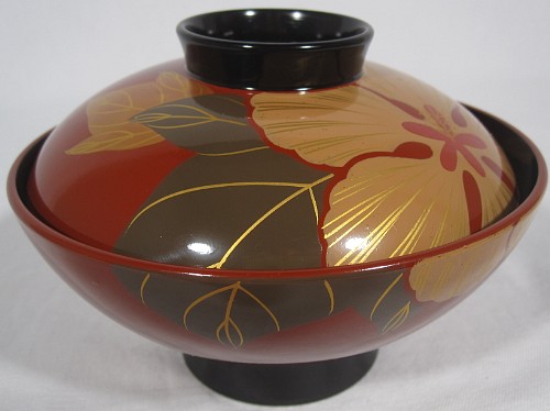 Item description : Wajima-nuri soup bowls 5 pieces with elegant Makie works of Hasu (lotus leave)