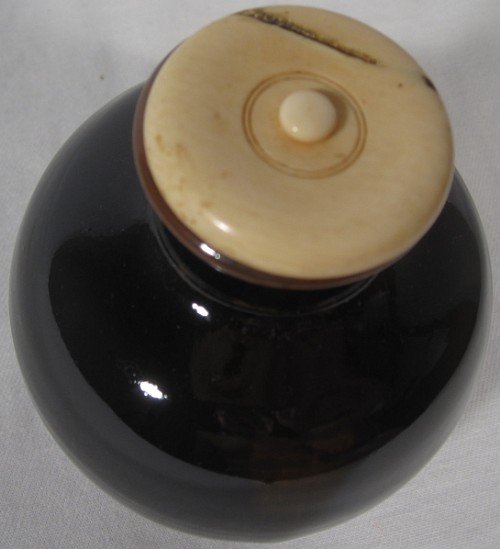 Item description : An Utsushi of a Meibutsu Chaire with a Mushikui lid called "Rikyu Marutsubo with a Shifuku. Name of the Shifuku design is Fujidane Donsu.