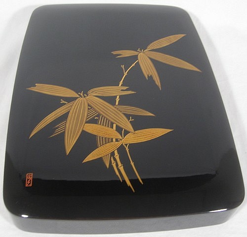Item decription : Wajima-nuri Fumibako with tasteful Makie works of Takezasa (bamboo leaves)