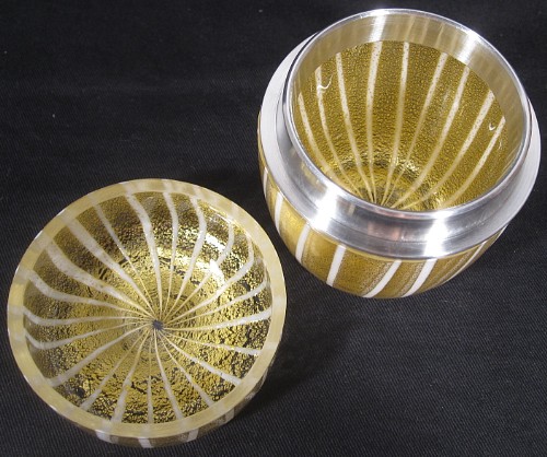 Item description : Giyaman tea caddy with rayures(stripe) design in gold