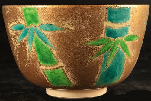 Item description : Kyoyaki tea bowl with bamboo design vivid Kinji (gold leaf)