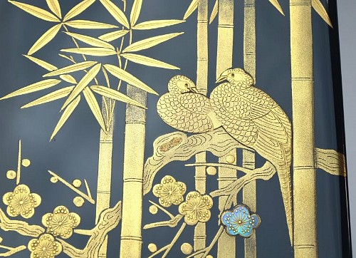 Item description : Suzuribako with factastic Makie works of Bamboo, Ume and a bird