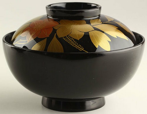 Wajima-nuri Soup Bowl With Tsubaki Makie